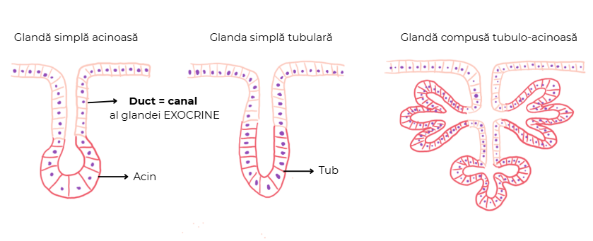 - exocrine = cu secreție în EXTERIORUL corpului / în cavități ce comunică cu exteriorul corpului