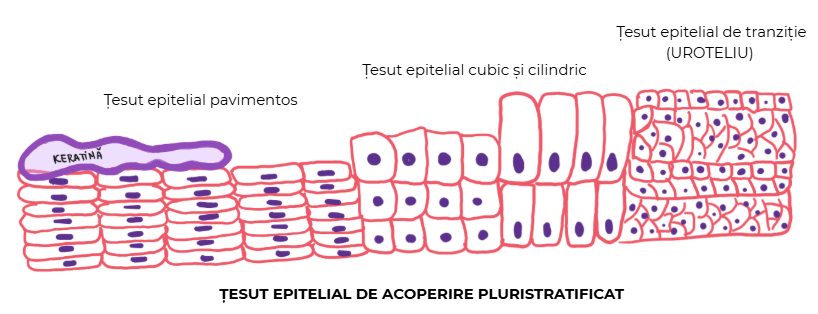 | PAVIMENTOS KERATINIZAT | PAVIMENTOS NEKERATINIZAT | CUBIC ȘI CILINDRIC | DE TRANZIȚIE (UROTELIU) |