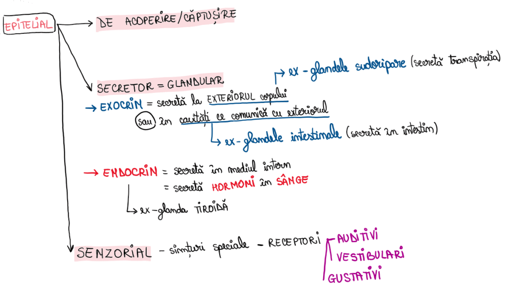 | 1. ȚESUT EPITELIAL DE ACOPERIRE | 2. ȚESUT EPITELIAL SECRETOR (GLANDULAR) | 3. ȚESUT EPITELIAL SENZORIAL |
